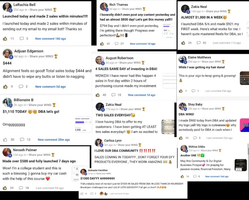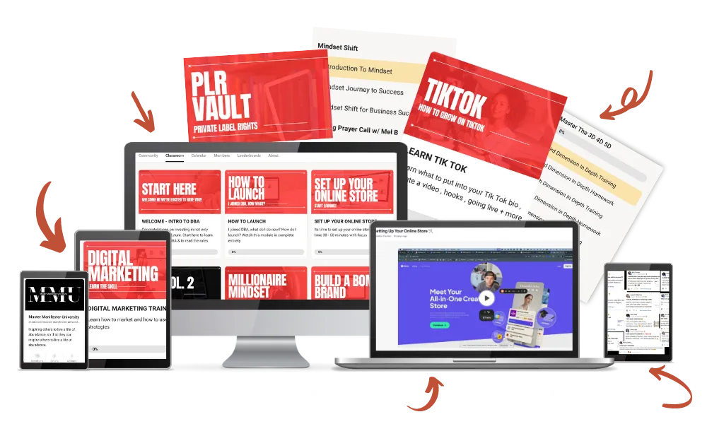 DBA is for anyone looking to: Quit their 9-5 and build online businesses full-time Create multiple passive income streams from digital products Learn in-demand skills like email marketing, social media mastery, and visual content creation Get up and running quickly with done-for-you templates and fill-in-the-blank frameworks Earn incomes using online platforms like Instagram, Facebook, Tiktok and Email marketing Sell online courses, planners, ebooks, and other digital products Cash in on vendor licenses and resell rights